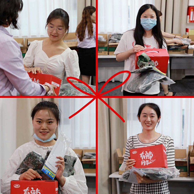 为了让大家更快地融入集体,人资伙伴贴心地为管培生们准备了入职礼物,统一的军训服装、精致的零食礼盒是他们到公司的第一份收获。